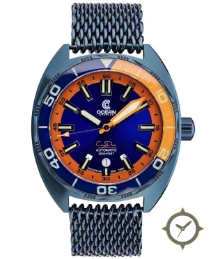 A Dive watch with a bold 42mm presence on the wrist, crafted from stainless steel featuring a blue dial with a unique sunburst finish.