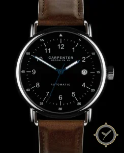A Minimalist watch with a vintage-inspired 33mm case, crafted from stainless steel featuring a black dial with a unique glossy finish.