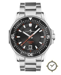 A Dive watch with a versatile 39.5mm case, that suits most wrists, crafted from stainless steel featuring a black dial with a unique sunburst finish.