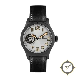 A Pilot watch with a versatile 39.5mm case, that suits most wrists, crafted from Coating featuring a white dial with a unique matte finish.
