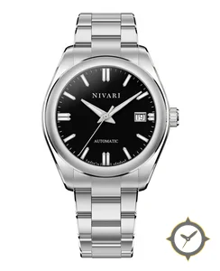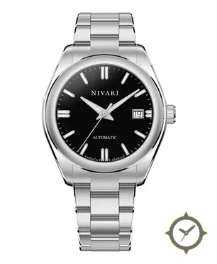 A Dress watch with a bold 47.5mm presence on the wrist, crafted from stainless steel featuring a black dial with a unique glossy finish.