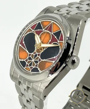 A Dress watch with a versatile 41mm case, that suits most wrists, crafted from stainless steel featuring a black dial with a unique cloisonné enamel finish.