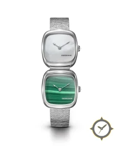 A Dress watch with a versatile 41mm case, that suits most wrists, crafted from stainless steel featuring a green dial with a unique malachite stone (striped) finish.