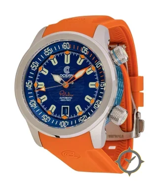 A Dive watch with a versatile 38.5mm case, that suits most wrists, crafted from stainless steel featuring a blue dial with a unique engraved wavy texture finish.