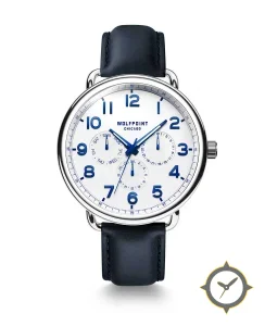 A Dress watch with a bold 46mm presence on the wrist, crafted from stainless steel featuring a white dial with a unique smooth lacquer finish.