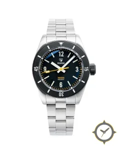 A Dive watch with a vintage-inspired 32.5mm case, crafted from stainless steel featuring a navy dial with a unique matte finish.