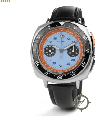 A Chronograph watch with a bold 42.5mm presence on the wrist, crafted from stainless steel featuring a blue dial with a unique matte finish.