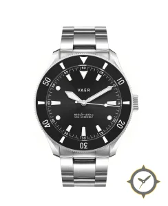 A Dive watch with a bold 43.5mm presence on the wrist, crafted from stainless steel featuring a black dial with a unique sunburst finish.