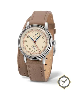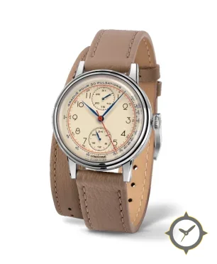 A Chronograph watch with a versatile 38.5mm case, that suits most wrists, crafted from stainless steel featuring a white dial with a unique matte finish.