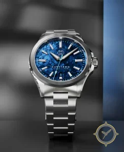 A Sports watch with a versatile 39mm case, that suits most wrists, crafted from stainless steel featuring a blue dial with a unique crushed-ice / marbled texture finish.