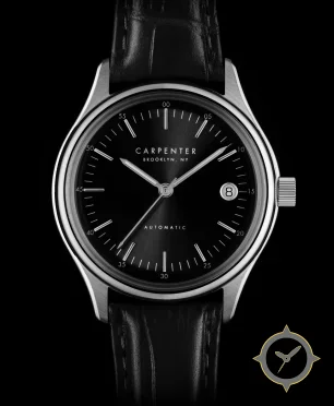A Dress watch with a bold 45.5mm presence on the wrist, crafted from stainless steel featuring a black dial with a unique sunburst finish.