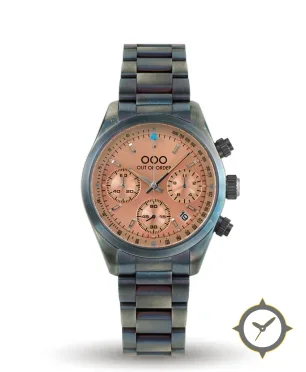 A Chronograph watch with a bold 41.5mm presence on the wrist, crafted from stainless steel featuring a brown dial with a unique sunburst finish.