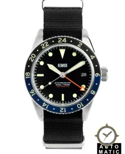A GMT watch with a bold 47.5mm presence on the wrist, crafted from stainless steel featuring a black dial with a unique matte finish and a true GMT complication for tracking a second time zone.