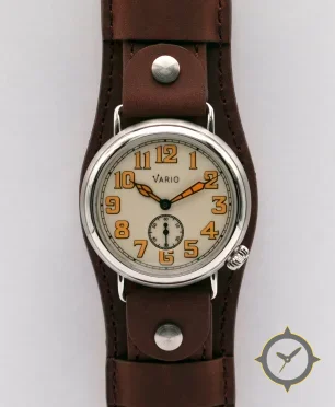 A Pilot watch with a vintage-inspired 33mm case, crafted from stainless steel featuring a white dial with a unique matte finish.