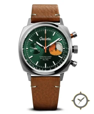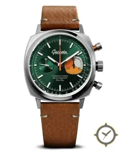 A Chronograph watch with a bold 44mm presence on the wrist, crafted from stainless steel featuring a green dial with a unique sunburst finish.