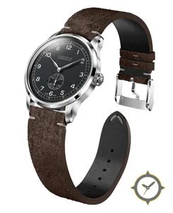 A Vintage watch with a vintage-inspired 33.5mm case, crafted from stainless steel featuring a black dial with a unique matte finish.