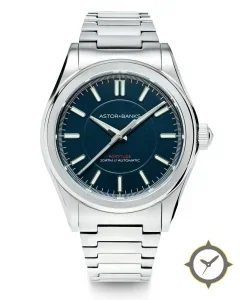 A Sports watch with a vintage-inspired 36mm case, crafted from stainless steel featuring a blue dial with a unique matte with slight grain finish.