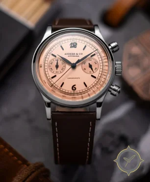 A Chronograph watch with a versatile 40mm case, that suits most wrists, crafted from stainless steel featuring a gold dial with a unique salmon sunburst metallic finish finish.