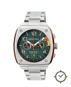 A Chronograph watch with a bold 46.5mm presence on the wrist, crafted from stainless steel featuring a green dial with a unique textured/waffle (raised geometric grid) finish.