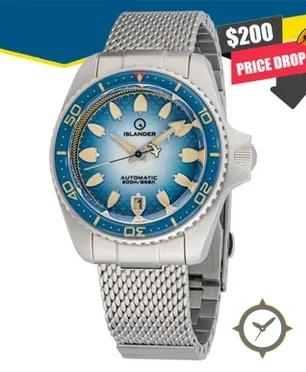 A Dive watch with a vintage-inspired 36.5mm case, crafted from stainless steel featuring a blue dial with a unique sunburst gradient finish.