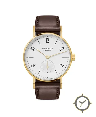 A Dress watch with a vintage-inspired 33.5mm case, crafted from gold featuring a white dial with a unique matte finish.