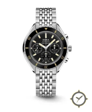 A Dive watch with a bold 48mm presence on the wrist, crafted from stainless steel featuring a black dial with a unique matte finish.
