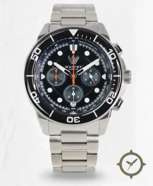 A Dive watch with a bold 48mm presence on the wrist, crafted from stainless steel featuring a black dial with a unique glossy with subtle concentric rings finish.