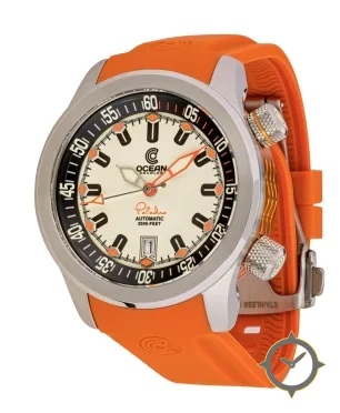 A Dive watch with a bold 44mm presence on the wrist, crafted from stainless steel featuring a white dial with a unique matte lacquer finish.