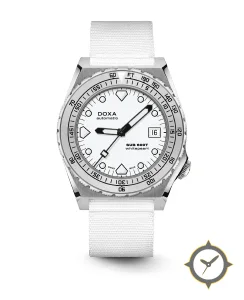 A Dive watch with a vintage-inspired 36mm case, crafted from stainless steel featuring a white dial with a unique matte finish.