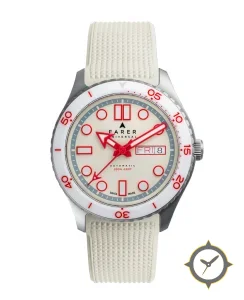 A Dive watch with a versatile 40mm case, that suits most wrists, crafted from stainless steel featuring a white dial with a unique matte finish.