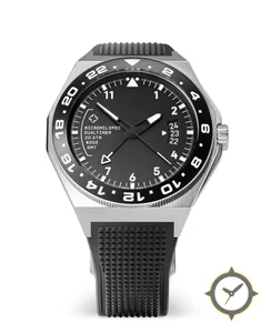 A GMT watch with a bold 45mm presence on the wrist, crafted from stainless steel featuring a black dial with a unique matte finish and a true GMT complication for tracking a second time zone.