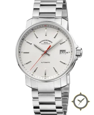 A Minimalist watch with a bold 43mm presence on the wrist, crafted from stainless steel featuring a white dial with a unique matte finish.