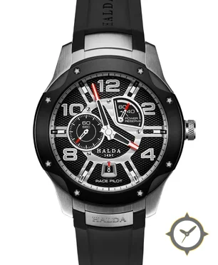 A Racing watch with a bold 41.5mm presence on the wrist, crafted from stainless steel featuring a black dial with a unique textured honeycomb/carbon-fiber style finish and a helpful power reserve indicator.