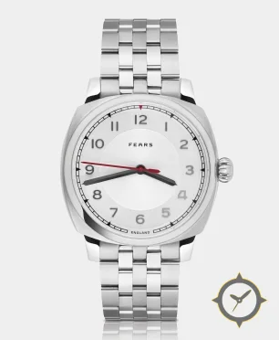 A Dress watch with a vintage-inspired 37.5mm case, crafted from stainless steel featuring a white dial with a unique matte with recessed central disc finish.