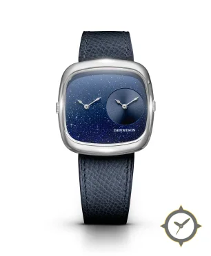 A Dress watch with a versatile 40.5mm case, that suits most wrists, crafted from stainless steel featuring a navy dial with a unique aventurine (sparkling) finish and a true GMT complication for tracking a second time zone.
