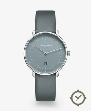 A Minimalist watch with a vintage-inspired 33mm case, crafted from stainless steel featuring a gray dial with a unique matte finish.