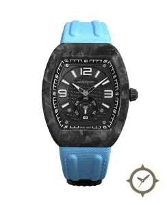 A Sports watch, crafted from carbon featuring a black dial with a unique carbon fiber weave finish.