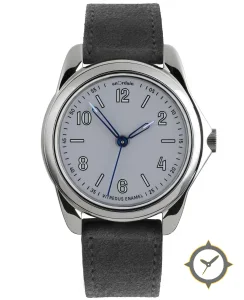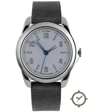 A Minimalist watch with a versatile 41mm case, that suits most wrists, crafted from stainless steel featuring a white dial with a unique enamel finish.