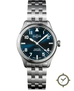 A Pilot watch with a vintage-inspired 34.5mm case, crafted from stainless steel featuring a blue dial with a unique sunburst finish.
