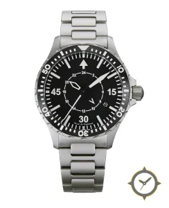 A GMT watch with a bold 43.5mm presence on the wrist, crafted from stainless steel featuring a black dial with a unique matte finish and a true GMT complication for tracking a second time zone.
