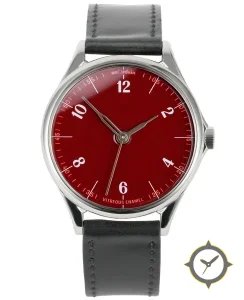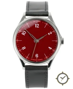 A Dress watch with a bold 45mm presence on the wrist, crafted from stainless steel featuring a red dial with a unique vitreous enamel finish.
