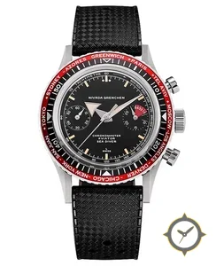 A Chronograph watch with a vintage-inspired 37.5mm case, crafted from stainless steel featuring a black dial with a unique matte finish, perfect for the global traveler with its world-time function.