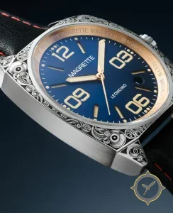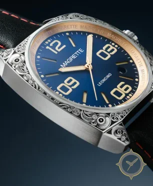 A Vintage watch with a vintage-inspired 36mm case, crafted from stainless steel featuring a blue dial with a unique radial sunburst finish.