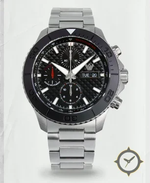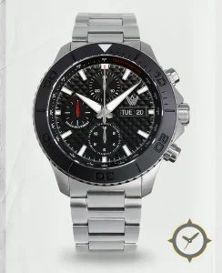A Chronograph watch with a vintage-inspired 37mm case, crafted from stainless steel featuring a black dial with a unique three-dimensional pyramid / waffle texture finish.