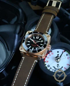 A Dive watch with a versatile 39mm case, that suits most wrists, crafted from bronze featuring a black dial with a unique matte finish.