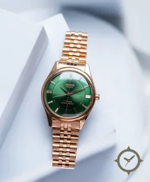 A Dress watch with a bold 43mm presence on the wrist, crafted from stainless steel featuring a green dial with a unique sunburst finish.