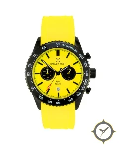A Racing watch with a versatile 41mm case, that suits most wrists, crafted from stainless steel featuring a yellow dial with a unique matte finish.