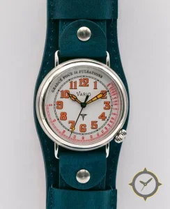 A Vintage watch with a vintage-inspired 36.5mm case, crafted from stainless steel featuring a white dial with a unique matte finish.