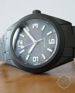 A Tactical watch with a bold 42.5mm presence on the wrist, crafted from stainless steel featuring a gray dial with a unique matte finish.