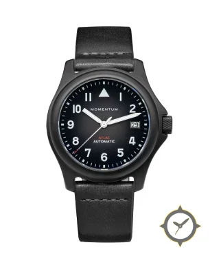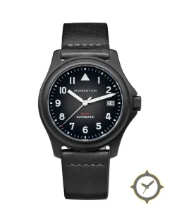 A Pilot watch with a vintage-inspired 32mm case, crafted from stainless steel featuring a black dial with a unique matte gradient finish.